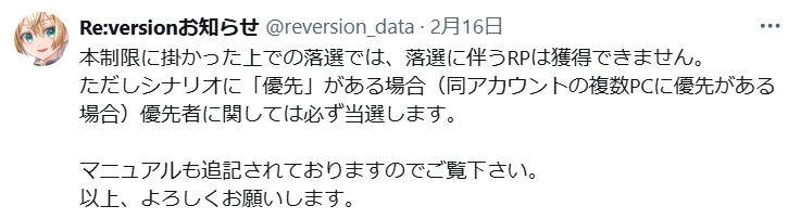 同一シナリオへの予約時_同一プレイヤーpcの当選について